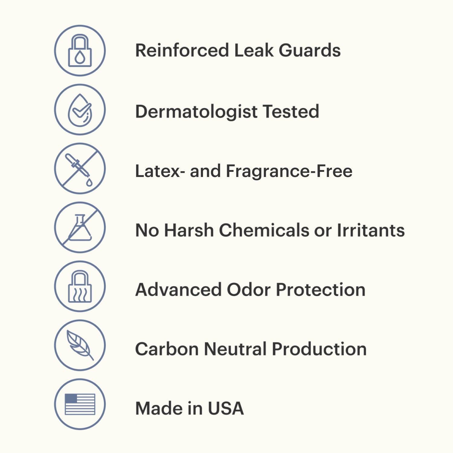 Period underwear and incontinence underwear share some similarities in terms of design, but they are very different when it comes to construction and absorbency levels.
