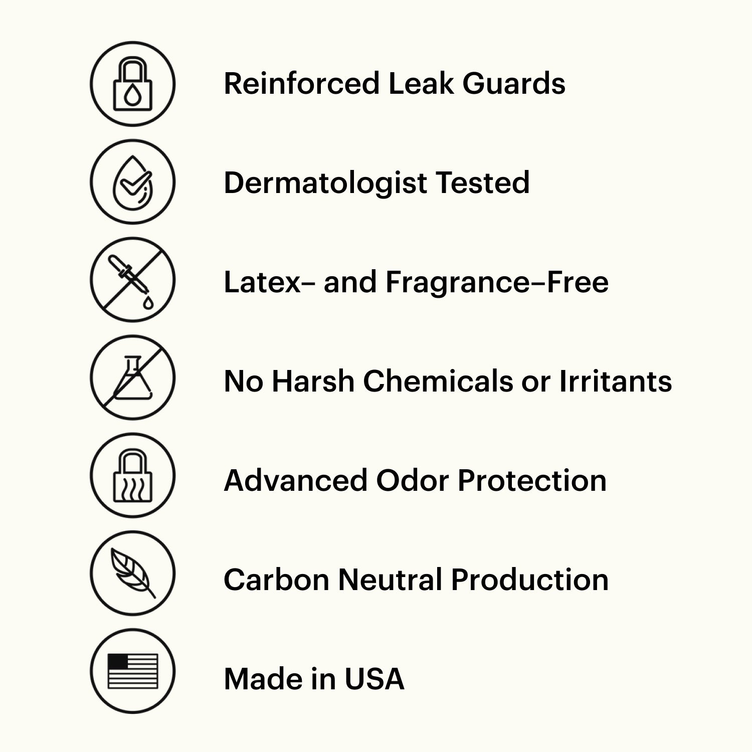 Period underwear and incontinence underwear share some similarities in terms of design, but they are very different when it comes to construction and absorbency levels.