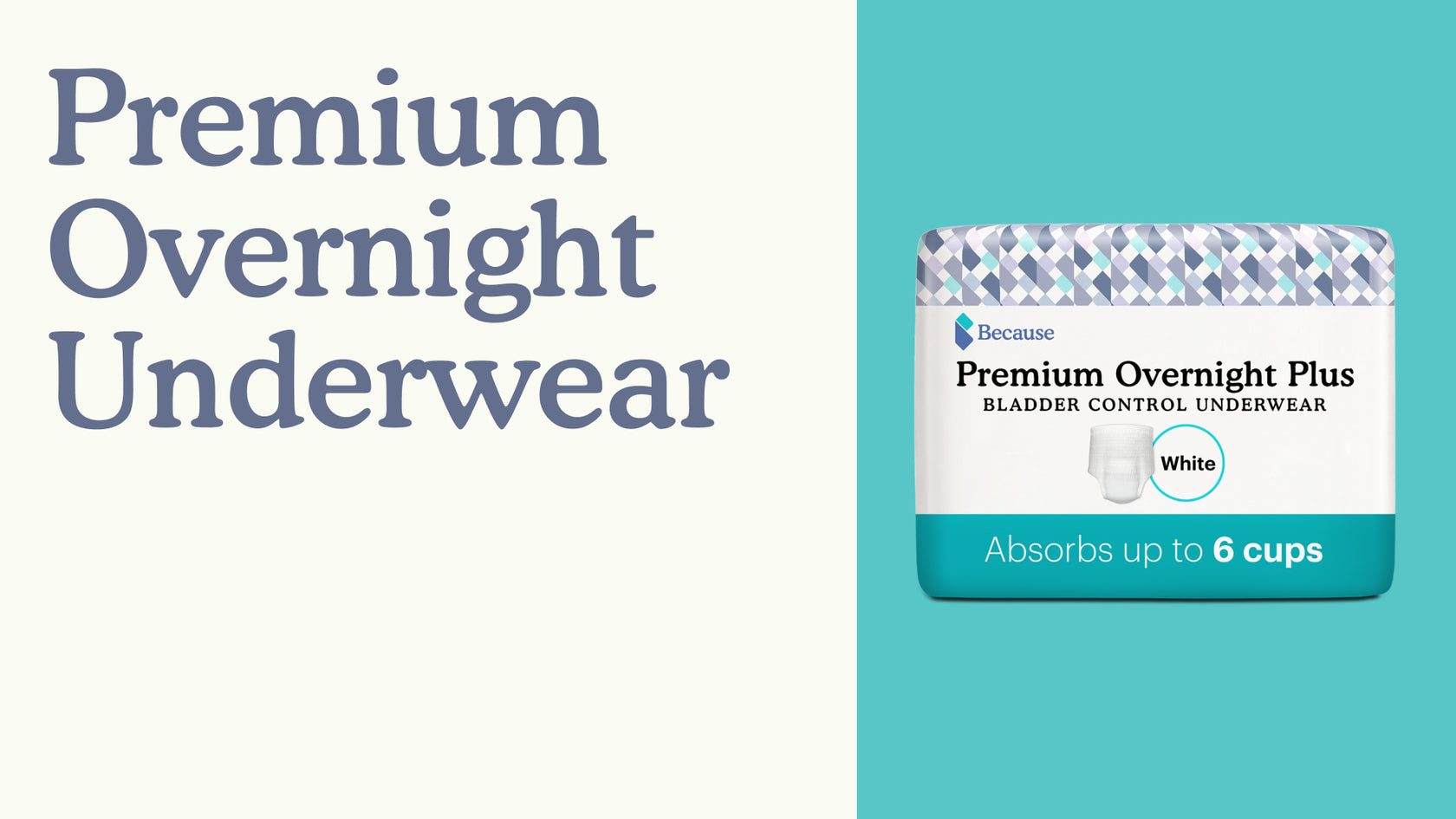 Because brand's line of overnight absorbency underwear is designed for heavy bladder leakage and nighttime use. Our super absorbent line of overnight adult diapers provide up to 6 cups of liquid to ensure you can get a comfortable and restful sleep.