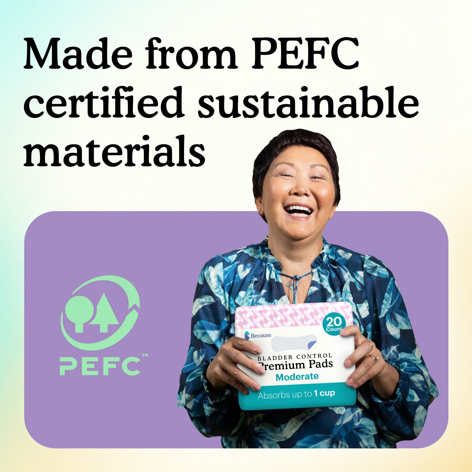Our best-selling moderate pads are perfect for those who experience minor or occasional leaks. These pads can absorb up to 1 cup of liquid and are completely invisible under clothing.