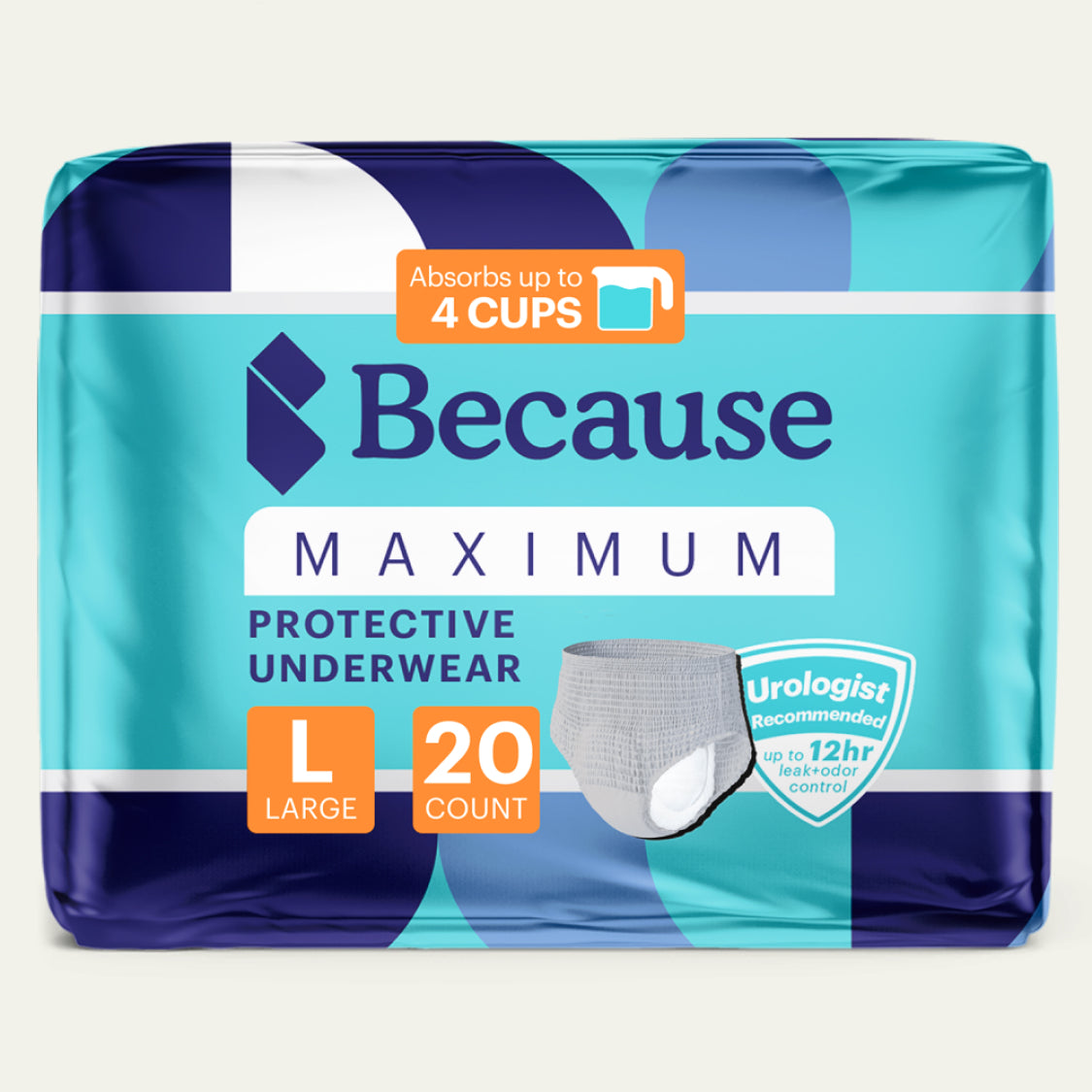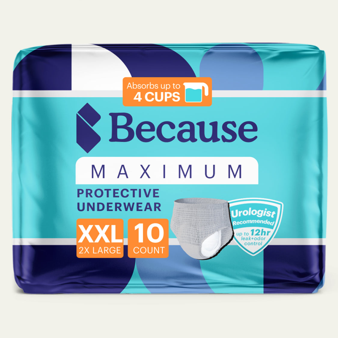 How long you can wear incontinence underwear depends on the absorbency level of the underwear and your specific needs. Some incontinence underwear is designed for light to moderate leaks, while others like Because brand's overnight absorbency underwear is designed for heavier leaks and can be worn longer.