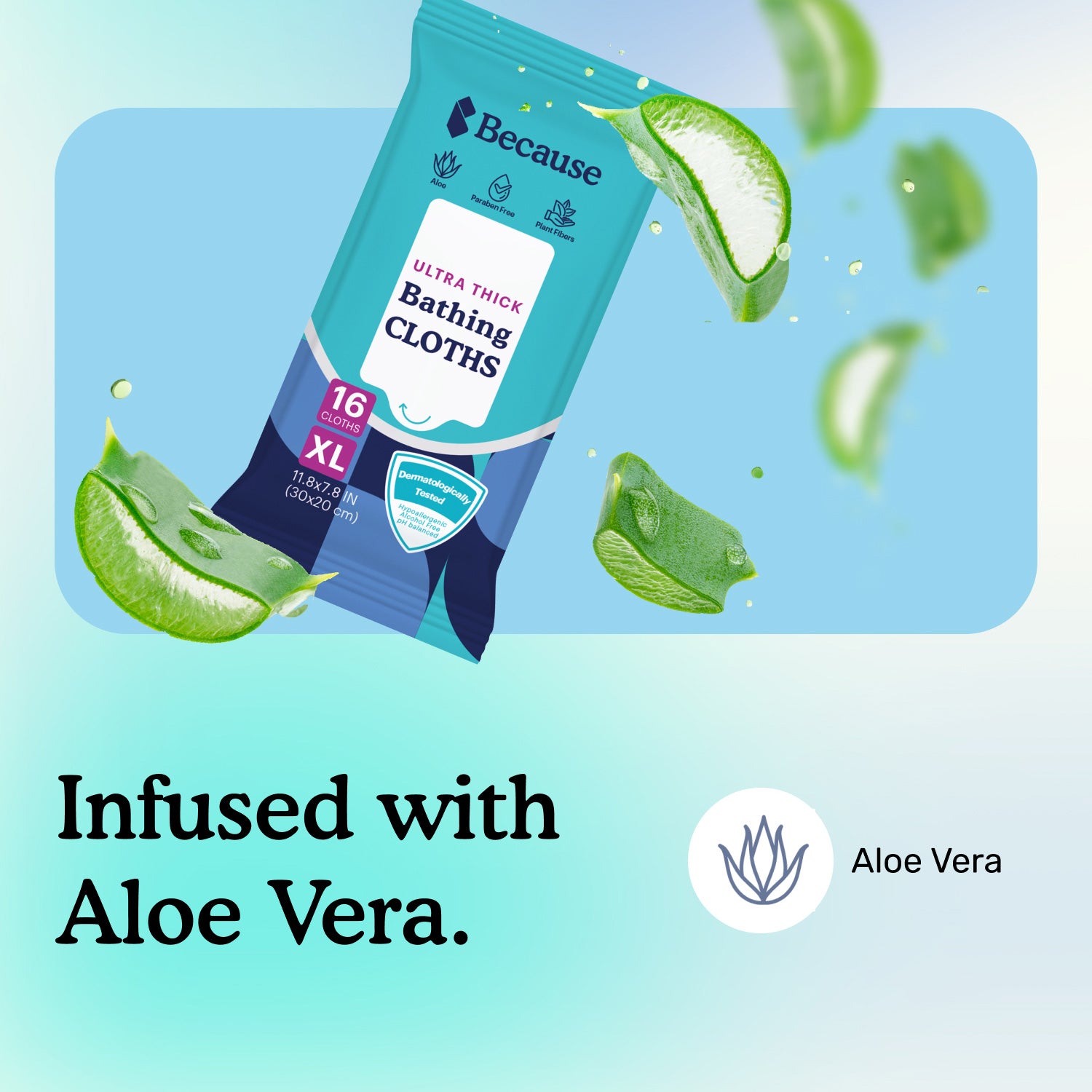 The main ingredients in these bathing wipes are: aloe vera and vitamin E. These ingredients help soothe and nourish the skin while providing a gentle, refreshing cleanse.