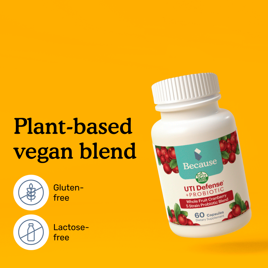 You can see the full ingredient list above, but the Because UTI Daily Defense Supplement is not only all-natural, but it is also gluten-free, non-GMO, and vegan.
